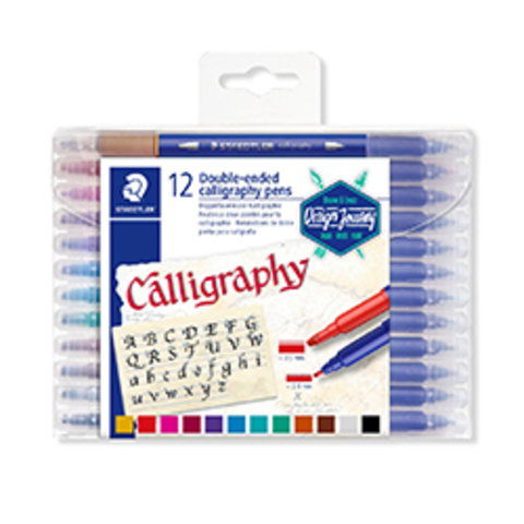 Набір з 12 двосторонніми каліграфічними ручками різних кольорів