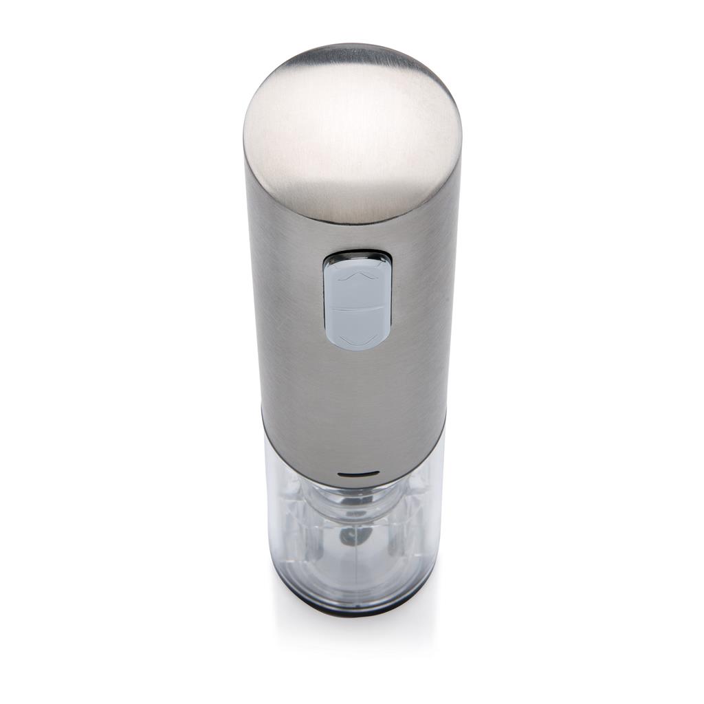 Електричний винний штопор з вбудованим підсвічуванням блакитного кольору. Інноваційна літієва батарея на 3,6 В. Легко відкриває винну пляшку за 8 секунд. У комплект входить кабель micro-USB для підзарядки. Поставляється в подарунковій упаковці.